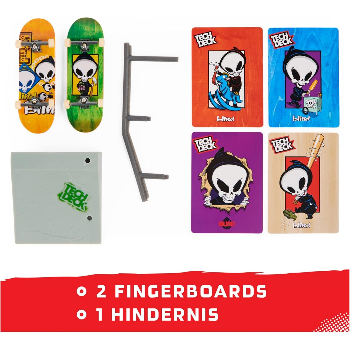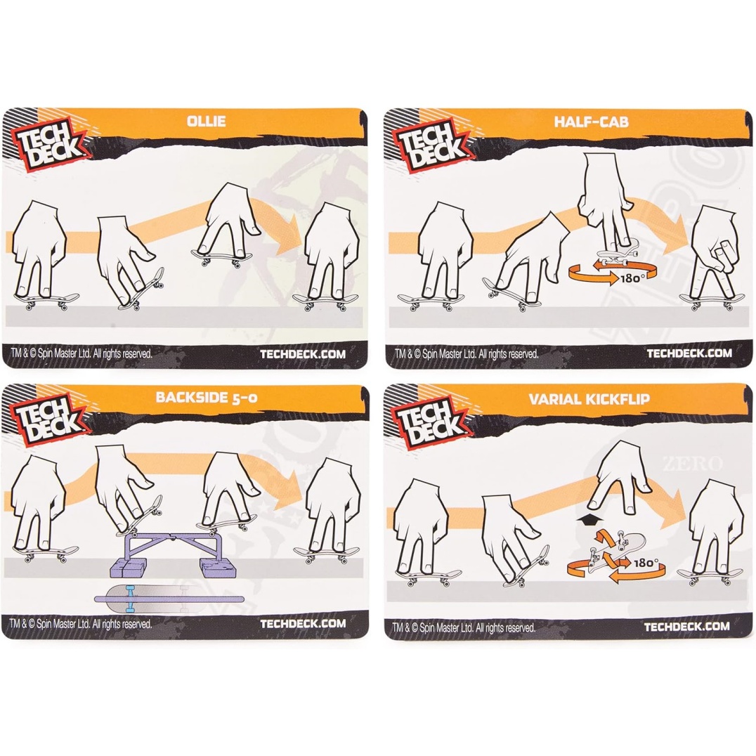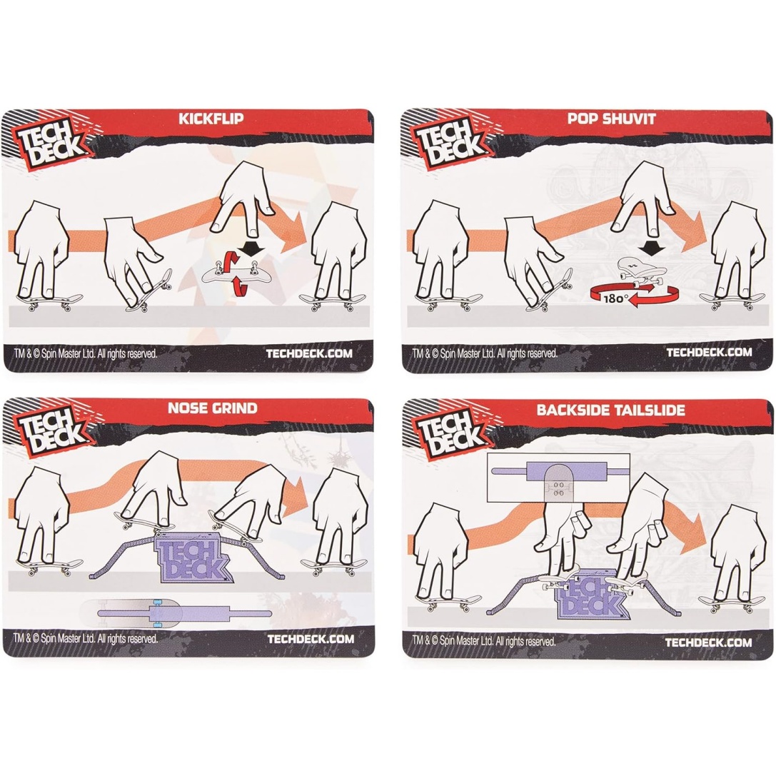 Includes: 2 Assembled Tech Deck Fingerboards, 1 Obstacle, 4 Challenge Cards